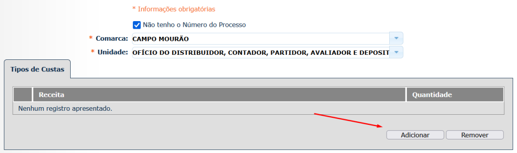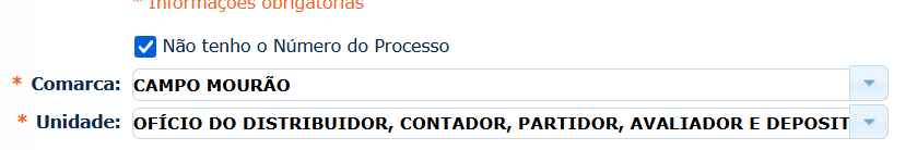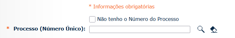 Neste campo, marcar “NÃO TENHO O NÚMERO DO PROCESSO”